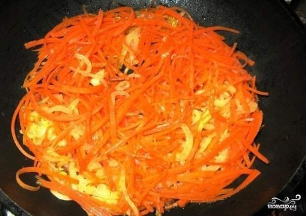 Тонко шинкуем морковь (можно и колечками или полуколечками - кому как нравится).