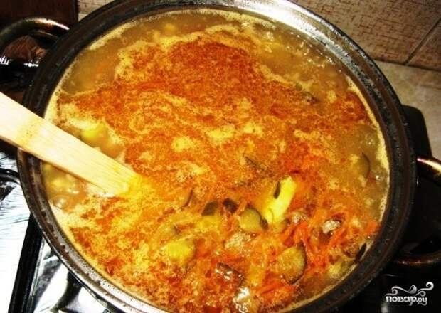 Варим 10 минут, после чего добавляем в кастрюлю нашу зажарку.
