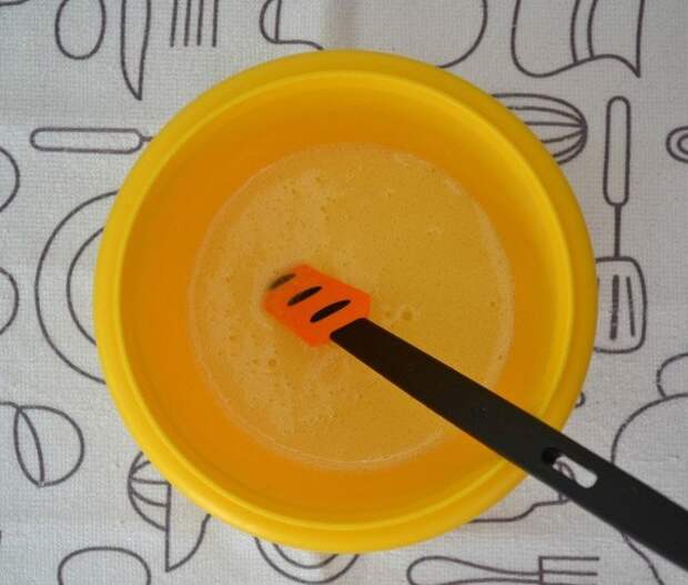 3. Яйцо взбить с солью и сахаром, добавить масло. Еще раз хорошо размешать.