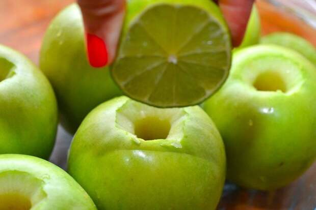 4. Полейте яблоки внутри лимонным соком.