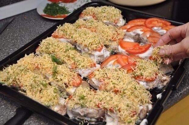 РЫБКА С СЫРОМ И ПОМИДОРАМИ