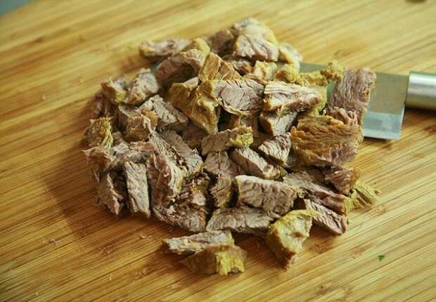 6. Его следует мелко нарезать, избавить от костей (если таковые имеются) и вернуть в бульон.