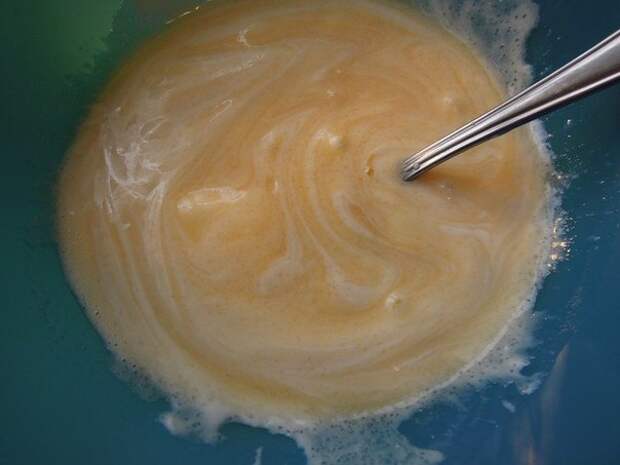 4. Смешать яйцо с сахаром, добавить сметану, масло и мед.