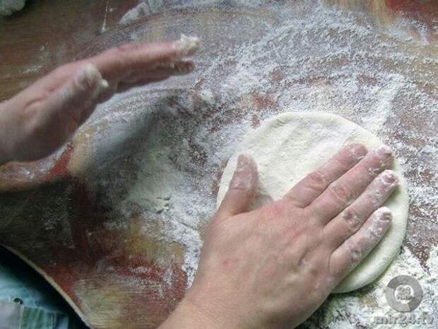 Замесить мягкое тесто, разделить на порции, сформовать толстенькие лепешки размером с небольшое блюдце.