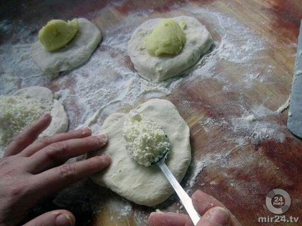 Для начинки используется либо сухой творог, в который добавляем яйцо, либо подсоленное картофельное пюре со сливками, сдобренное ложкой подсолнечного масла. В картофельную начинку хорошо добавить также немного зиры или шафрана.