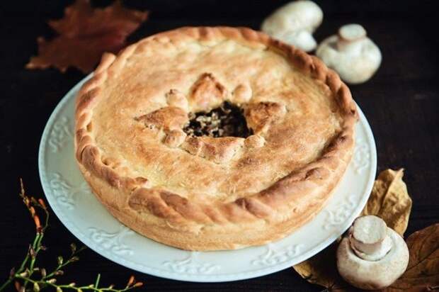 5. Раскатать меньшую часть теста, покрыть начинку и защипать края пирога. В середине проделать небольшое отверстие. Выпекать в духовке, разогретой до 160 градусов, около 40 минут.