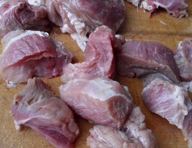 1. Мясо нарезать небольшими кусочками.