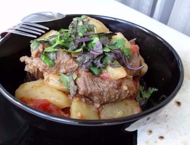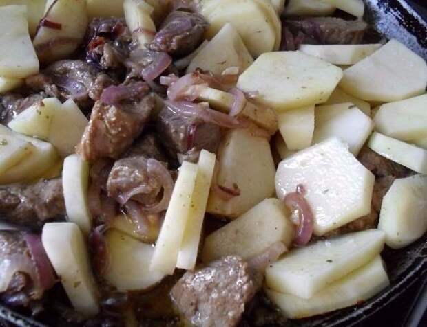 6. Добавить его к мясу и жарить на слабом огне минут 20.