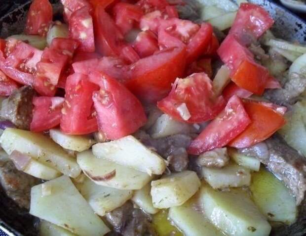 7. Затем опустить помидоры и тушить до готовности.