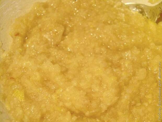 Перекрутим лимоны (вместе с кожурой) через мясорубку или используем кухонный комбайн. Добавим стакан сахара и хорошенько перемешаем.