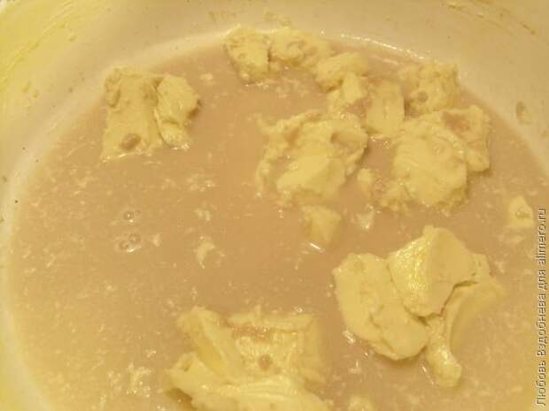 Для начала растворим дрожжи в воде, добавим соль и мягкое сливочное масло.