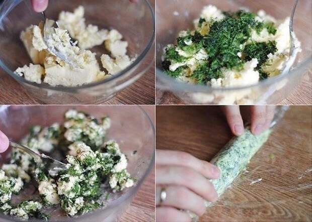 1. Сначала подготовим масло. Размягченное сливочное масло смешиваем с порубленным укропом, солим.