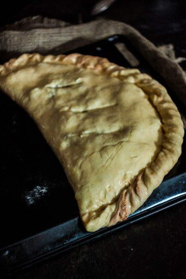 6. Смажьте поверхность кальцоне смесью желтка и масла.