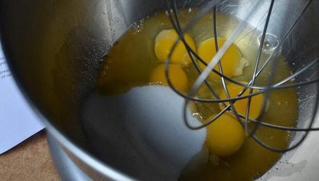 Яйца взбейте с сахаром до увеличения массы втрое.