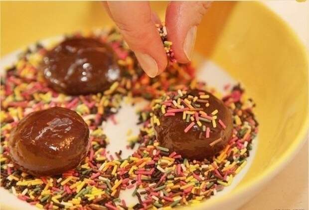 В кастрюле средних размеров на среднем огне смешайте какао, сливочное масло и сгущенное молоко. Варите, помешивая, пока смесь не загустеет, около 7-10 минут. Снимите с огня и дайте постоять, пока смесь достаточно не охладится. Скатайте маленькие шарики, можно украсить их, обваляв в разных посыпках (например кокосовой стружке, сахарной пудре, измельченных орешках, шоколадных или разноцветных кондитерских посыпках).