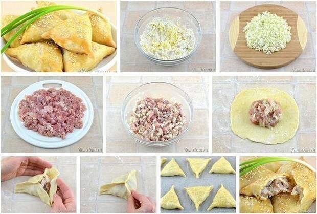 Нежное куриное мясо в хрустящем слоеном тесте.