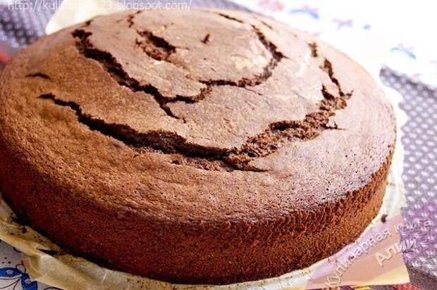 Можно взять любой вами любимый шоколадный бисквит. Если у вас получится сухой бисквит, то пропитайте его сахарным сиропом, или компотом... На этот раз я сделала шоколадное кухэ (форма 26 см), он хорош тем, что получается влажным и не таким "тяжелым", как шоколад на кипятке.