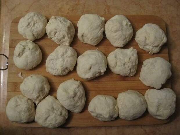 Замешиваем постное дрожжевое тесто. Когда подойдет, обмиаем один-два раза, даем вновь подняться и можно начинать делить на порционные шарики размером с мелкое яйцо.