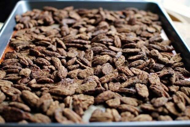 7. Застелите противень листом и выложите туда орешки. Запекайте при температуре 170-180 градусов, иногда их помешивая.