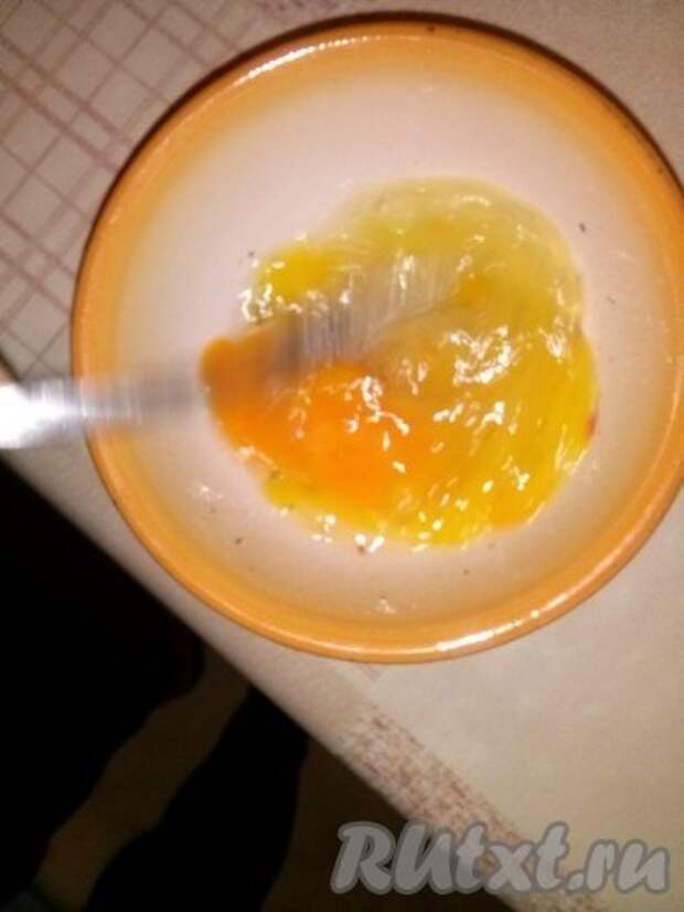 Шаг 2. Пока нагревается сковорода, взбиваем яйца с приправой и перцем.