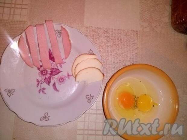 Шаг 1. Измельчаем колбасу, сыр, лук.