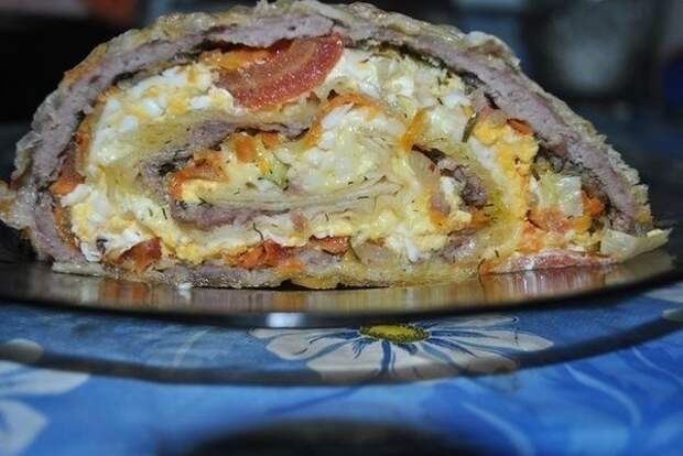 1. Раскладываем лаваш, смазываем сметаной, потом фарш (в него добавляем лук+морковь+помидоры+соль+специи и), сверху зелень, яйца покрошить, сыр, сметана. И скручиваем в рулет.