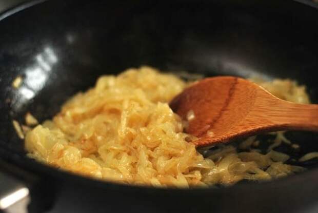 3. Добавляем соль и сахар и поджариваем на среднем огне до темно-желтого цвета. Если вы хотите классический французский суп, поджарьте лук до коричневого цвета.