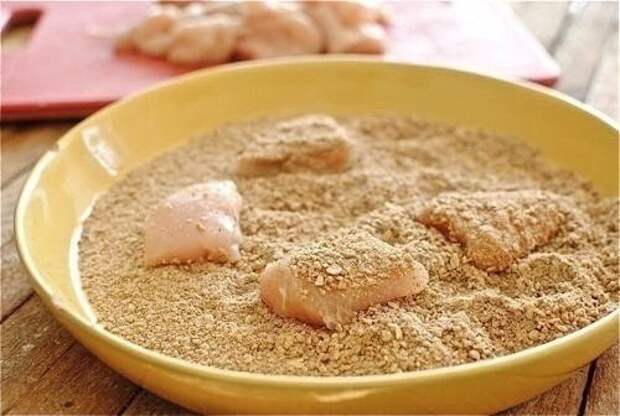 4. Курицу обваляйте в сухой смеси.