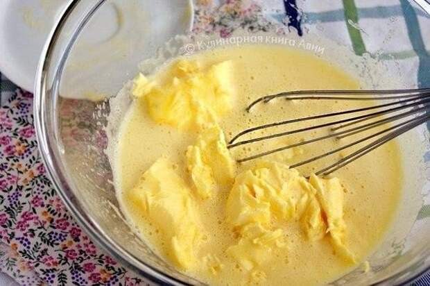 Муку просеять и соединить с разрыхлителем и ванильным сахаром. Яйца взбить с сахаром при помощи венчика. Добавить размягченное сливочное масло и перемешать. Добавить сметану и еще раз хорошо перемешать. Постепенно всыпать в яично-сметанную массу муку с разрыхлителем и замесить мягкое некрутое тесто.