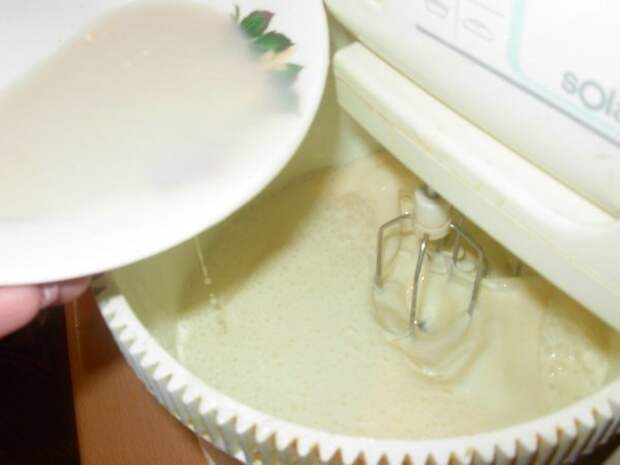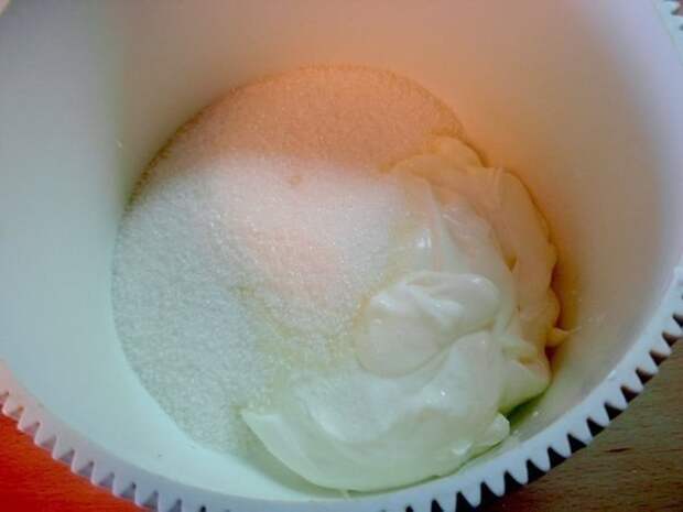 3. Тем временем взбить 500 гр. сметаны с 1 ст. сахара, всыпать ванилин.