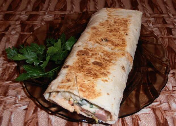Греем шаурму на сковородке с толстым дном. Обжариваем на среднем огне с двух сторон до появления румяной корочки. Приятного аппетита!