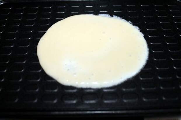В вафельницу вливаем 1 ст. л. теста.