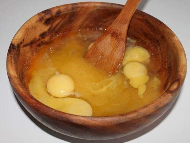 Растопленное масло соединяем с сахаром и растираем.
