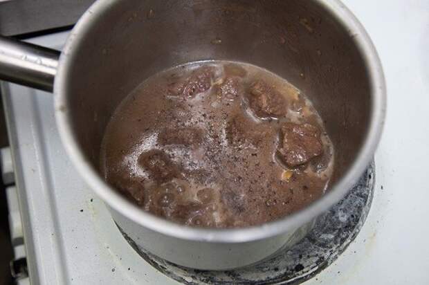 6. Добавить соль, перец, зиру, немного говяжьего бульона. Тушить 10-15 минут.