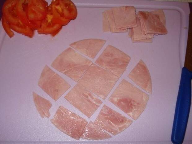 2. Ветчину нарезать небольшими кусочками.