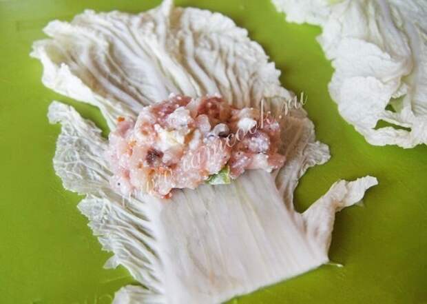 Мясную начинку выложить на лист капусты и завернуть голубец.